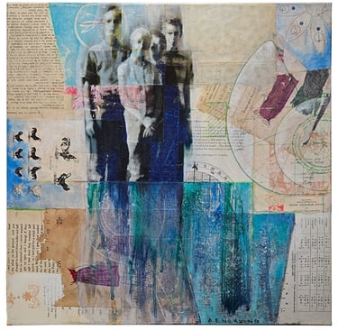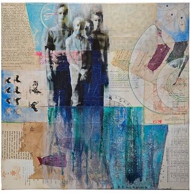 I'm an artist living in coastal Maine. My paintings are a mishmash of vintage/antique paper collage layers and art-making mediums (pencil, pen, acrylics, oils, etc.). I use whatever I think may create the effect I'm looking for at that moment. I often paint over found paintings, always leaving small touches of the original piece sneaking through.